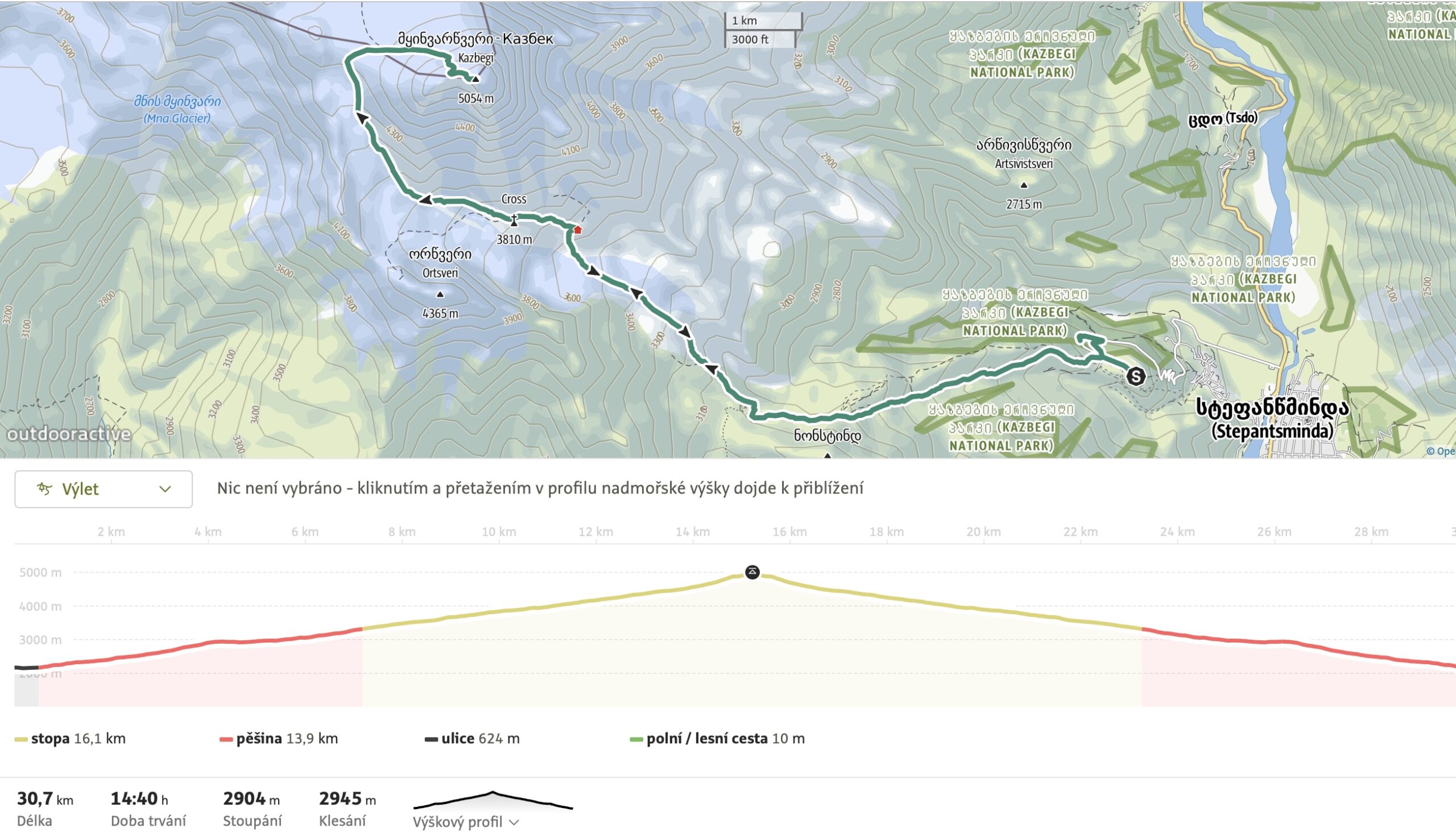 • Náročnost výstupu: nutná je předchozí zkušenost s vysokohorskou turistikou ve výškách 3 až 4 tisíce metrů a dobrá fyzická zdatnost. Samotný výstup na vrchol Kazbeku není technicky náročný – nejedná se o lezecký výstup a bude mu předcházet důkladná aklimatizace. Celková náročnost je ale i tak vysoká. Doporučit mohu i předchozí aklimatizaci ve výšce cca 3 tisíce metrů 1 až 3 týdny před vlastní akcí (není podmínkou).